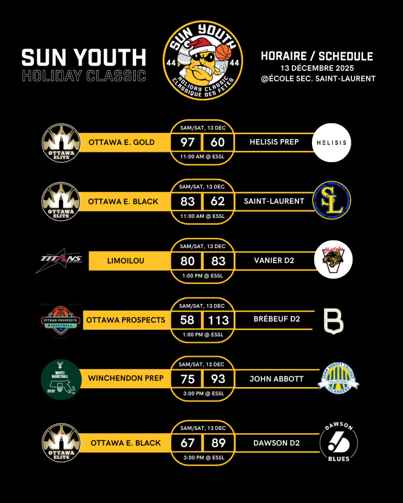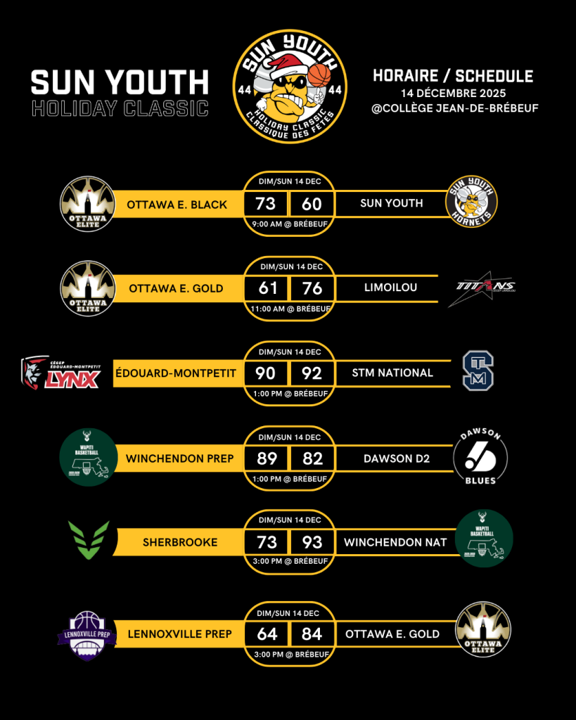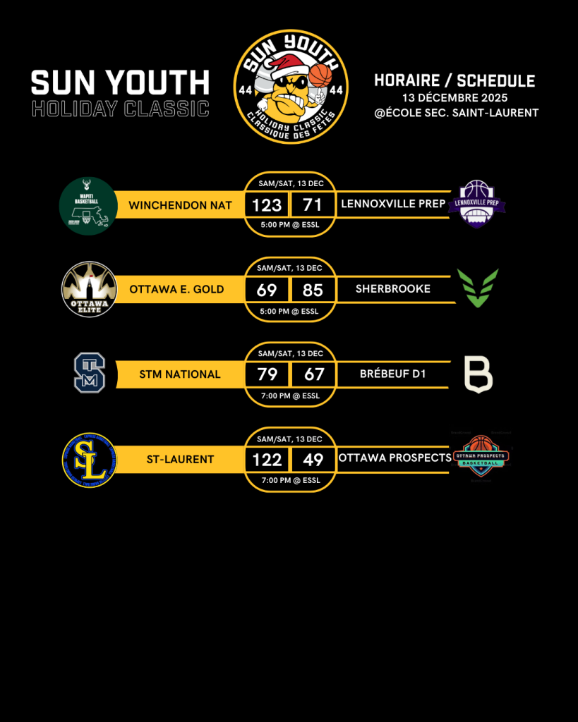 Le tournoi Classique des Fêtes est une occasion pour les basketteurs de Jeunesse au Soleil de se démarquer en affrontant les meilleures équipes du Québec, du Canada, des États-Unis (dont la Riverside Church Hawks de New York et la Vermont Academy) et de l’étranger (l’équipe nationale chinoise U19).